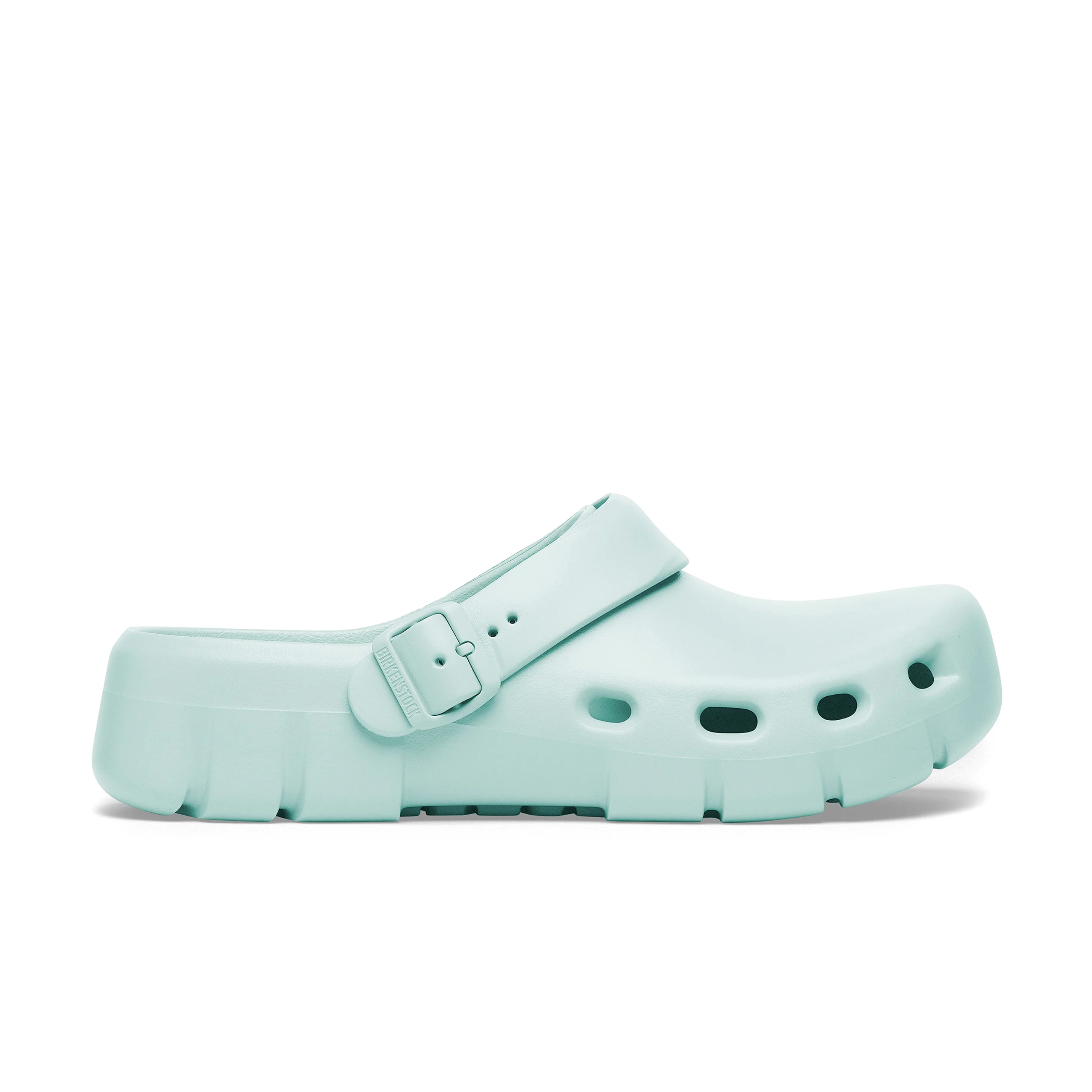 Introducing the all-new Birki Flow, our first post-sport recovery clog. Designed around the contours of our iconic footbed and bestselling Birki clogs, this new lightweight EVA (ethylene vinyl acetate) model is ultra-breathable, highly flexible, odour resistant and water-friendly. This EVA clog provides the support that Birkenstock wearers know and love along with the added comfort of air circulation from strategically placed vents that aid breathability. It is completed with classic Birkenstock design cues, from the adjustable backstrap to the moulded buckle.