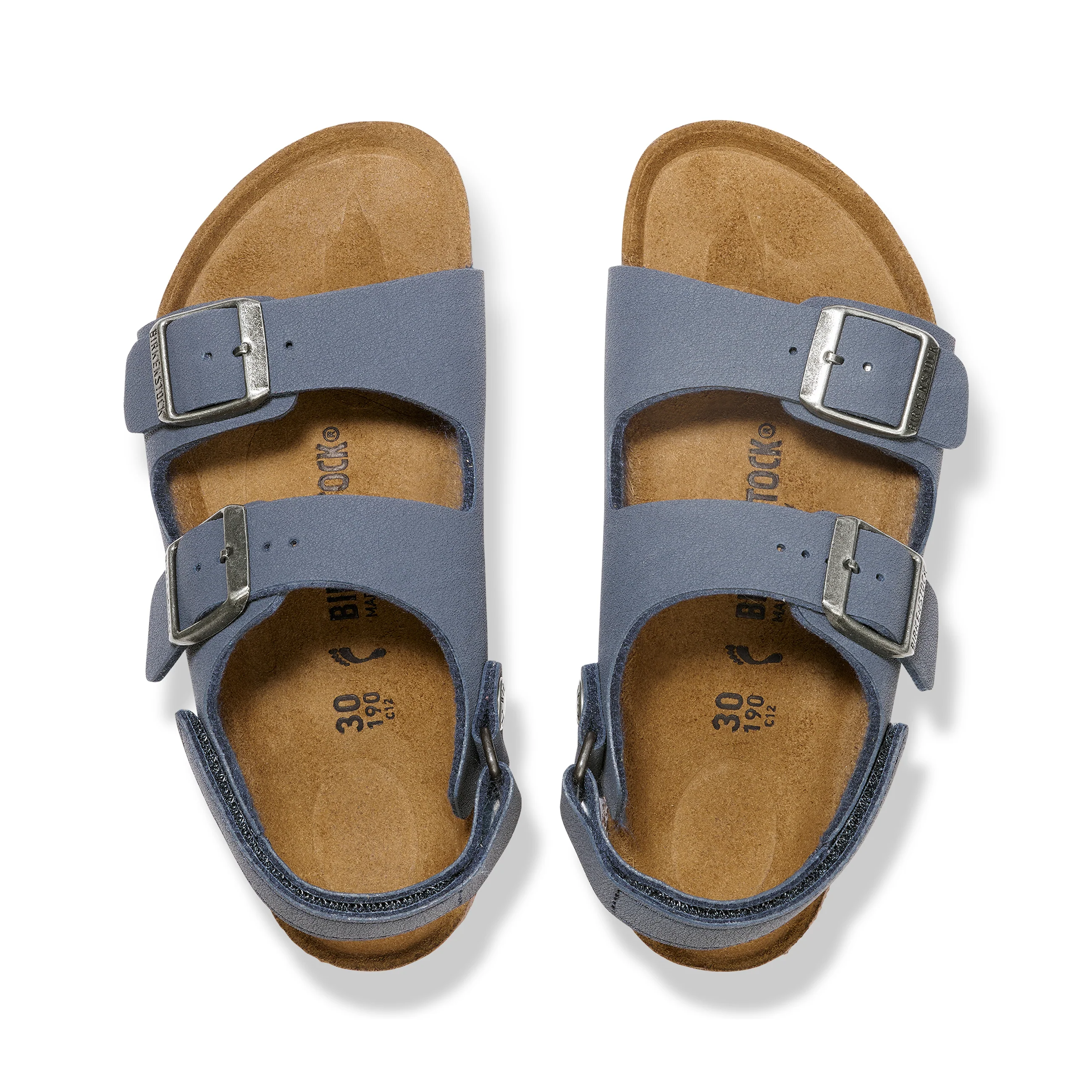 Add a heel strap to our iconic Arizona sandal and you get the Birkenstock Milano, a classic, with maximum grip, stability, and a perfect fit, even during boisterous play. The upper is made from the skin-friendly, hard-wearing synthetic material Birko-Flor® in a sophisticated nubuck-like look, which boasts a texture and colour that could almost be mistaken for real leather. The back strap has a hook and loop fastener for easy adjustability.